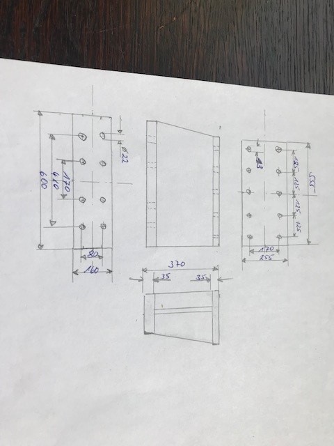 - Bohrbild: 125 x 170 M13 (x5), 170/410 x 80 M22 (siehe Zeichnung)